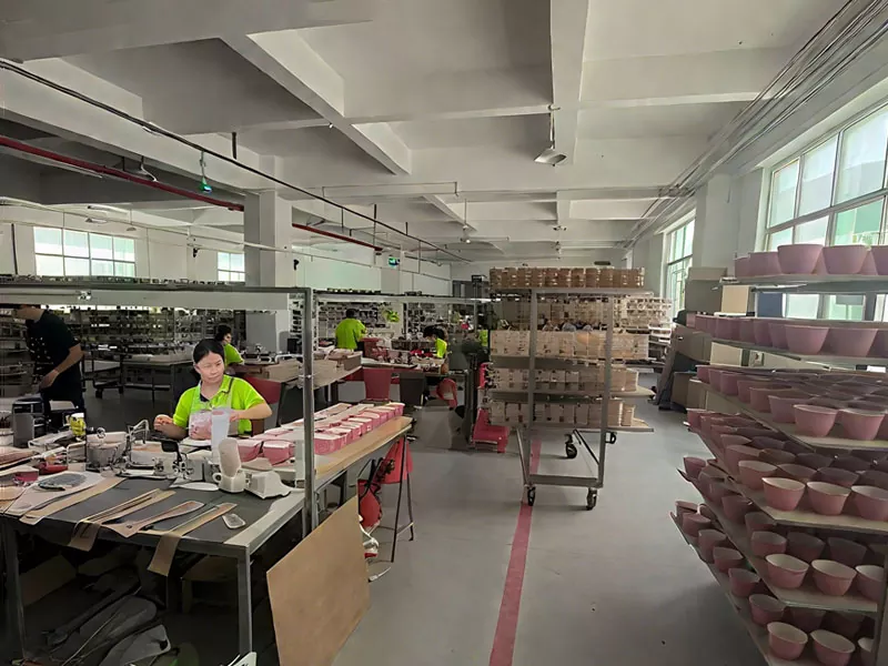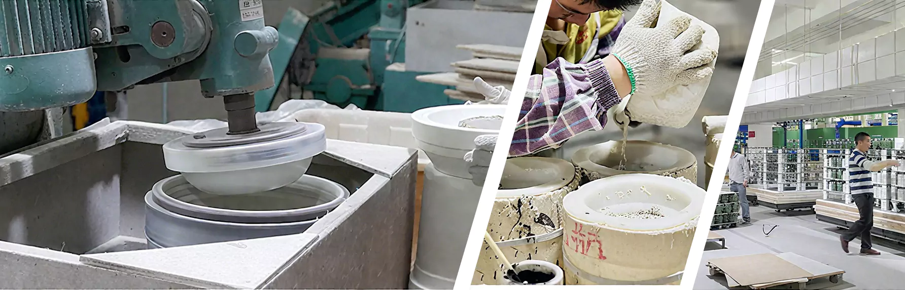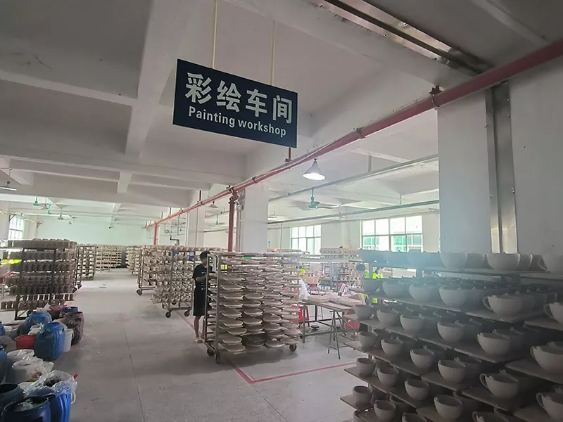 Нашата главна фабрика во Фуџијан е специјализирана за висококвалитетен керамички прибор за јадење, вклучувајќи чаши (чаши за кафе и чај) и свеќи. Фуџијан е центар за керамичко занаетчиство. Нашата фабрика може да се пофали со најсовремени производствени линии и ISO-сертифицирани процеси, прецизно обезбедувајќи прецизност во обликувањето, застаклување и отпуштање, обезбедувајќи и функционални и естетски пријатни производи.