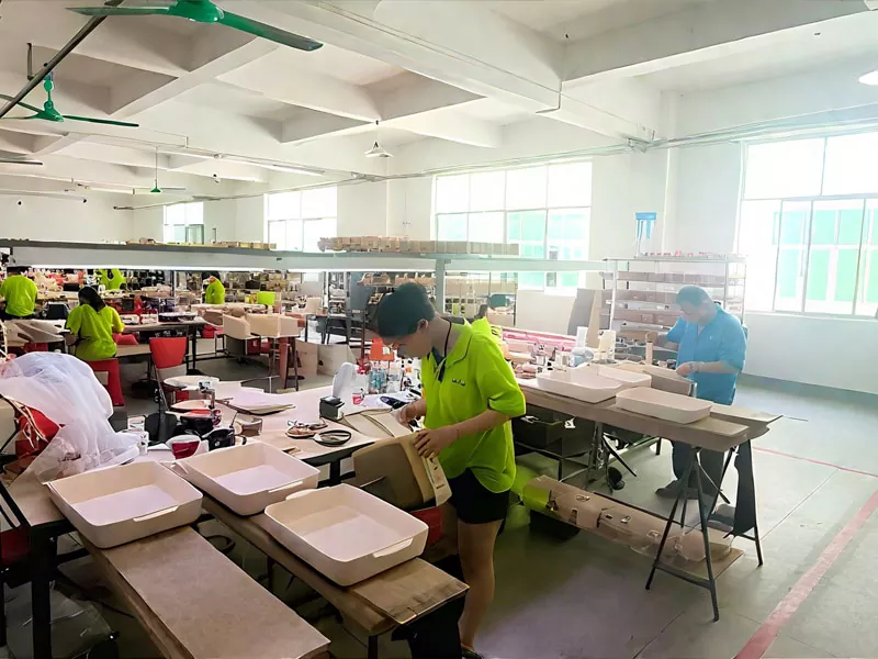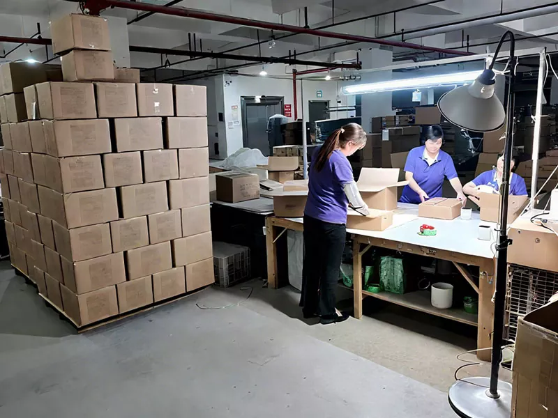 За да го олесниме пакувањето и испораката, воспоставивме свој центар за пакување во близина на нашето седиште во Донггуан. Овој центар е специјализиран за решенија за пакување за кревки предмети како стаклени свеќи и дифузери. Можеме да создадеме сопствени кутии и облоги, а ние користиме еколошки материјали за да ги заштитиме предметите како стаклени дифузери и декоративната керамика, обезбедувајќи ја нивната безбедност за време на транспортот.