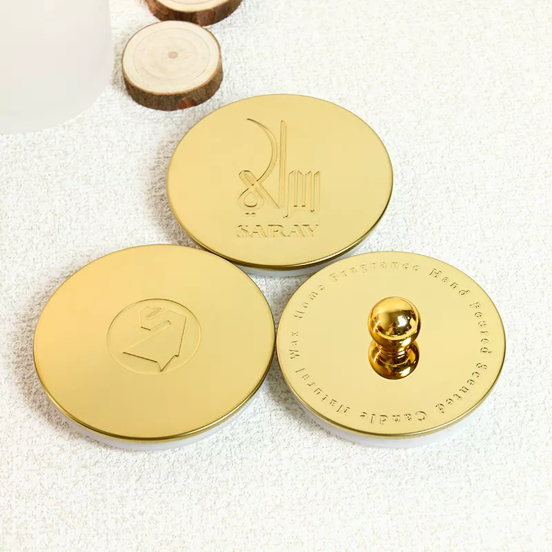 Прилагодено, капакот може да се изработи со техники на intaglio и втиснување за да се создадат најразлични логоа, вклучувајќи симболи на брендот, за целосно да се задоволат индивидуалните потреби. Компатибилен со сите тегли со свеќи, додава уникатен декоративен и карактеристичен допир. Издржливоста и рециклибилноста на не'рѓосувачки челик придонесуваат за одржлива употреба. Без разлика дали се користи за инсталација на мириси за дома или прилагодено пакување на брендот, уникатниот метален стил го подобрува целокупниот квалитет на теглата за свеќи, што го прави премиум додаток кој комбинира практичност со естетиката, индивидуалноста и пријателството на животната средина.