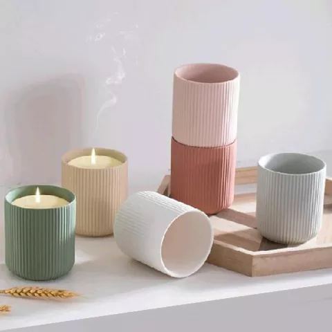 • Држач за керамички свеќа во боја на макаронДржач за керамички свеќа во боја на макарон