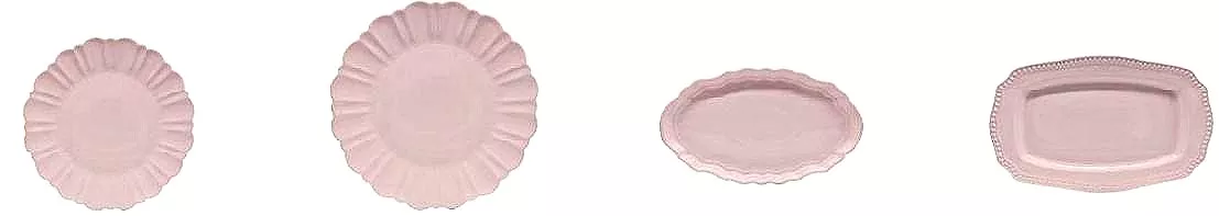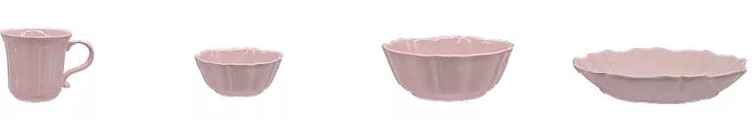 Со доминантна шема на бои на макарон розова боја, оваа мека, боја со ниска заситеност создава смирувачки ефект, адаптирајќи се на најразлични домашни амбиции, од современи минималистички до инспирирани и рустикални инспирирани од Инстаграм, создавајќи впечатлив акцент, без да бара никаков стил на врвот. Рачно нацртаните, брановидни рабови на чинии и плочи го кршат стереотипот на традиционалните прибор за јадење. Тие се меки на допир, нелизга и природно не лизгање кога се одржуваат, прикажувајќи прецизно изработка на занаетчиство во секој детал.